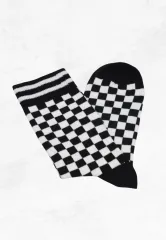 Șosete negre cu carouri și design vesel, fără cusătură pentru confort sporit.
